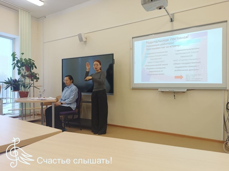 коррекционная школа для детей с нарушением слуха №37 часто проводит "родительские гостинные", чтобы рассказать родителям своих учеников как можно больше информации про особенности воспитания глухих и слабослышащих детей.