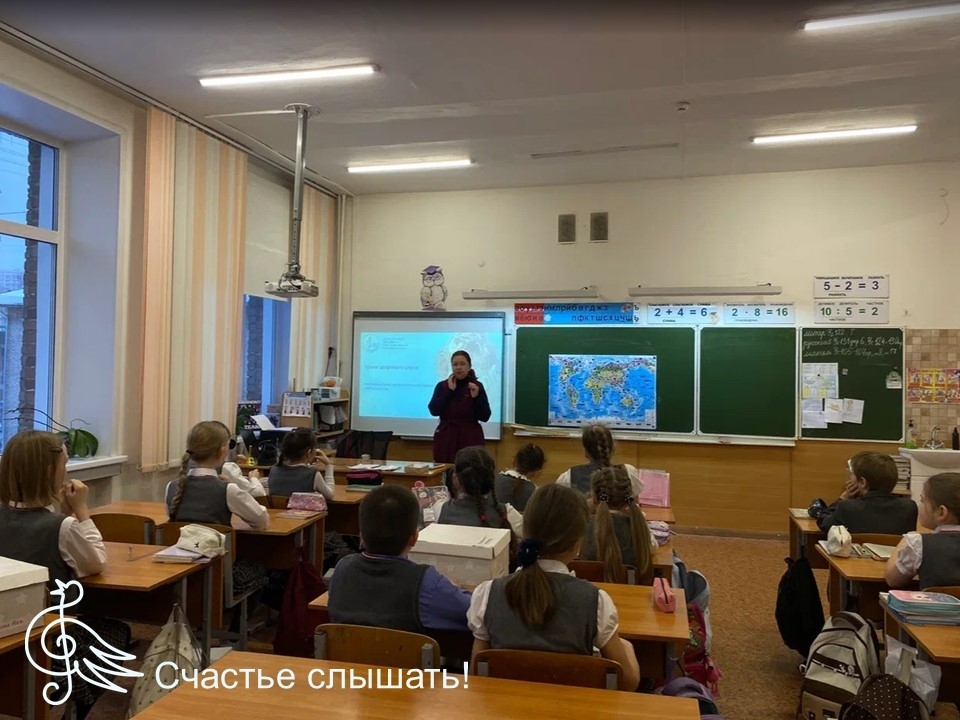 Еще один день наша команда провела в школе. Здесь прошли 12 уроков с самыми веселыми и любознательными, где мы учили правила заботы об ушках, обсуждали полезные и вредные советы для слуха, а также рассказывали про детей и взрослых с нарушением слуха и как с ними общаться.