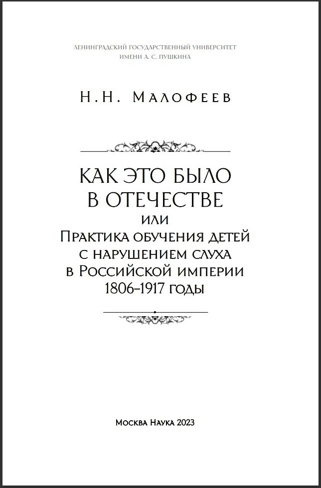 Обо всем этом вы узнаете в новой монографии академика Н.Н. Малофеева "Как это было в Отечестве или Практика обучения детей с нарушениями слуха в Российской империи (1806-1917 годы). М. Наука, 2023.